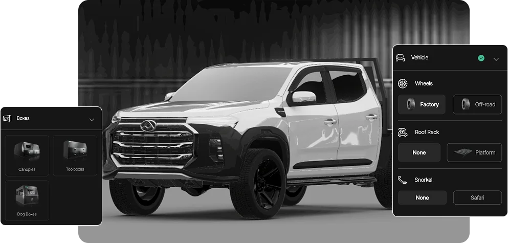 A fully bespoke 3D configurator tailored to your products, industry, and customers. Provide your audience with an engaging, real-time product visualisation experience that enhances confidence, drives enquiries, and increases ecommerce sales. No pre-built templates—just a custom-built solution designed to fit your business.